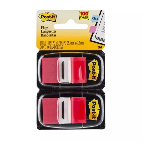 BANDERITAS POST-IT 680-1 2.5CM ROJAS C/2