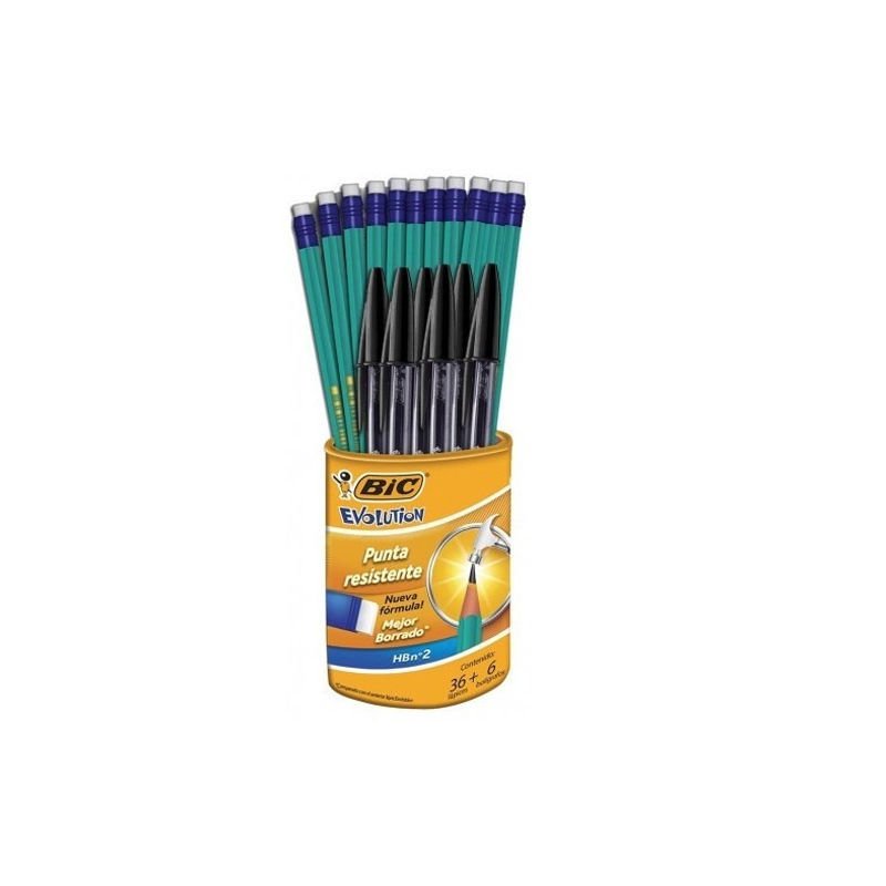 Lápiz bote con 36 Bic cont+6 Bic preys
