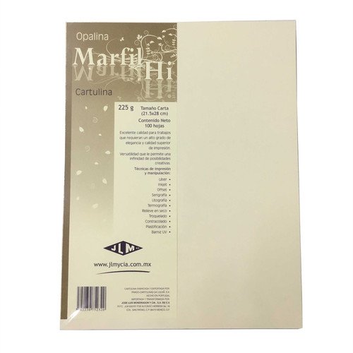 Papel opalina marfil carta de 125 gr. Medidas: 21.6×27.9 cm para impresoras : offset/ serigrafía/ inkjet y láser