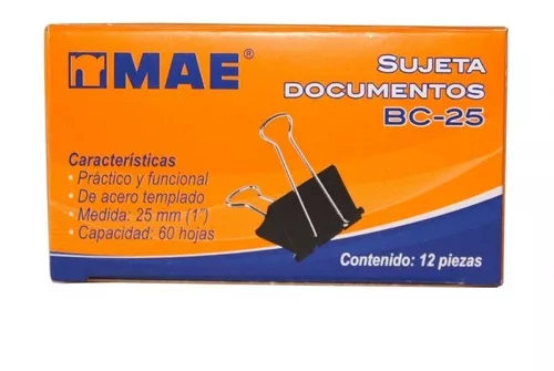 PINZA SUJETAPAPELES MAE 25MM (1″) CON 12